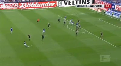 キッカーはラウル。逆サイドのバウムヨハンへ出してそのまま縦へ突進。バウムヨハンから再びラウルへってとこで相手DFがクリア。
